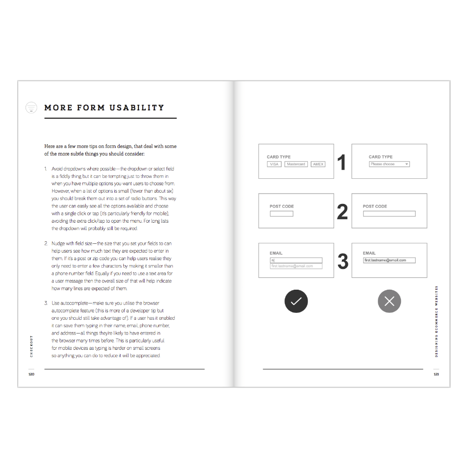 Design product pages that answer all your users' questions and checkout flows that don't see big drop-offs. Presented as 54 illustrated hints and tips, which cover all elements of a user's experience, from the copy to the calls to action.
